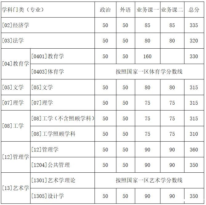 2. 体育学、艺术学理论、专业学位中的软件工程领域工程硕士、工商管理硕士、公共管理硕士和工程管理硕士分数线由教育部统一划定。